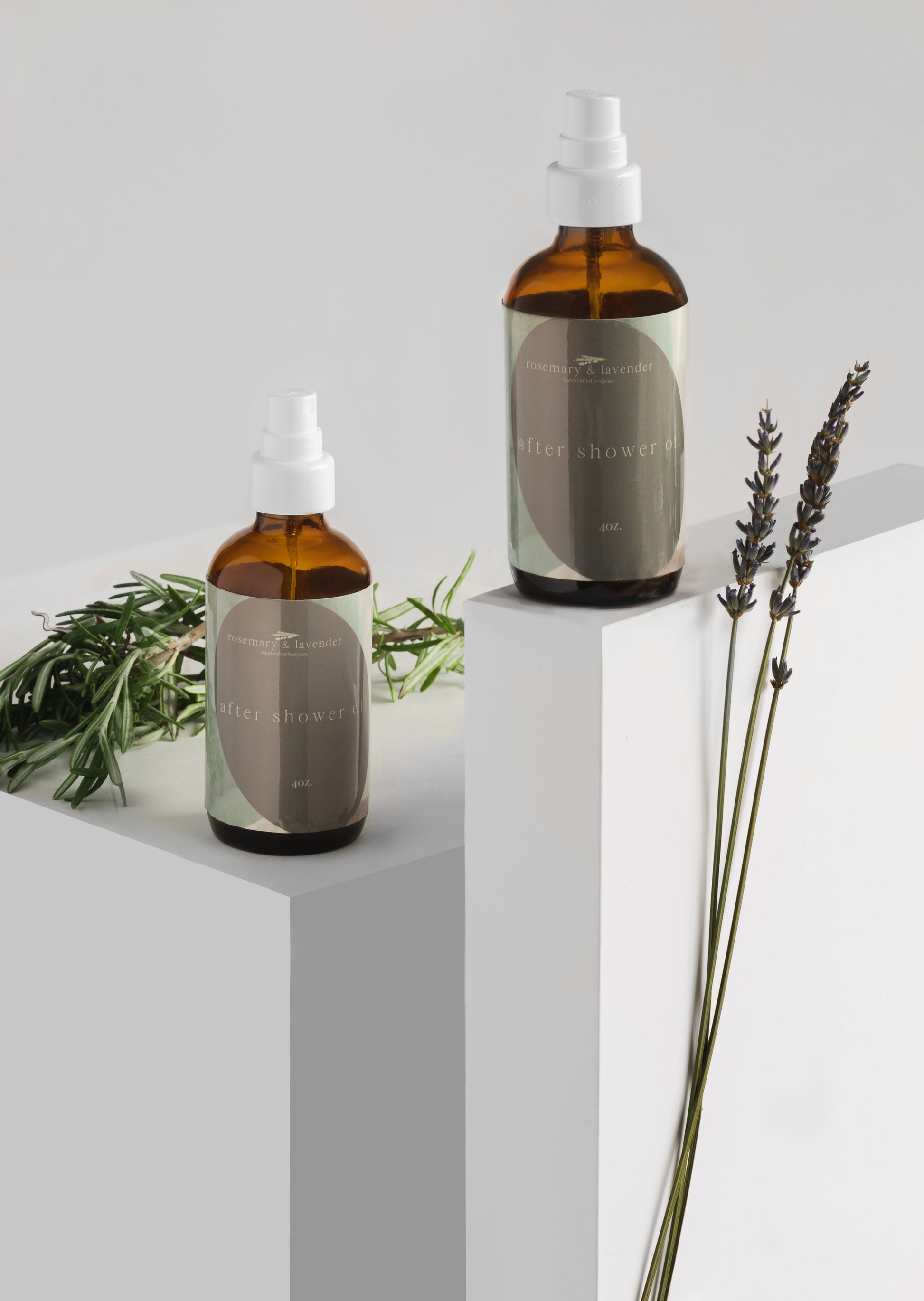 Our Rosemary+Lavender Body Oil is a harmonious fusion of Olive Oil, Grapeseed Oil, Sweet Almond Oil, and a special blend of other carrier oils. Expertly crafted to seal in moisture, this unique formulation offers a luxurious solution for individuals seeking a holistic skincare experience.